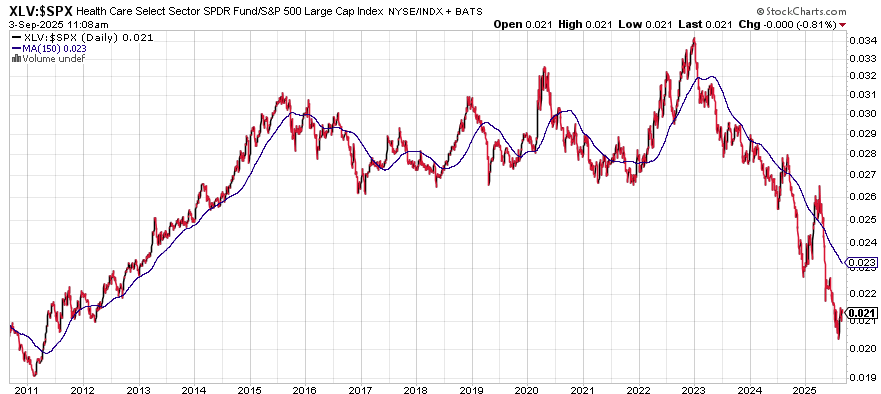 Let me leave you with this…healthcare stocks haven’t been this low relative to the S&P500 since the end of the Great Financial Crisis. The chart below illustrates the XLV (Healthcare ETF) relative to the S&P500 Index.